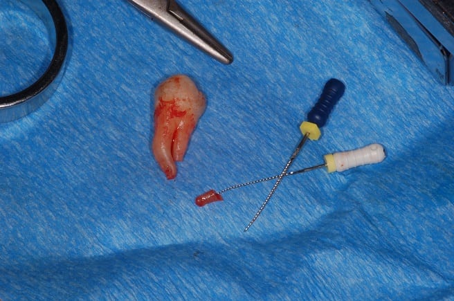 - Remove the file and the root tip will come with. Since the root tips should be loose at this point of the extraction this is very easy to do.